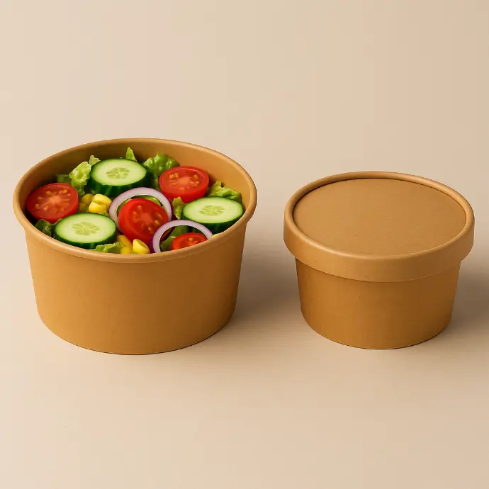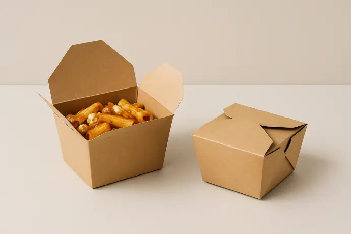 Contenants en kraft robustes et pratiques, parfaits pour les plats chauds à emporter tels que la poutine, les pâtes ou les sautés. Imperméables et respectueux de l’environnement.